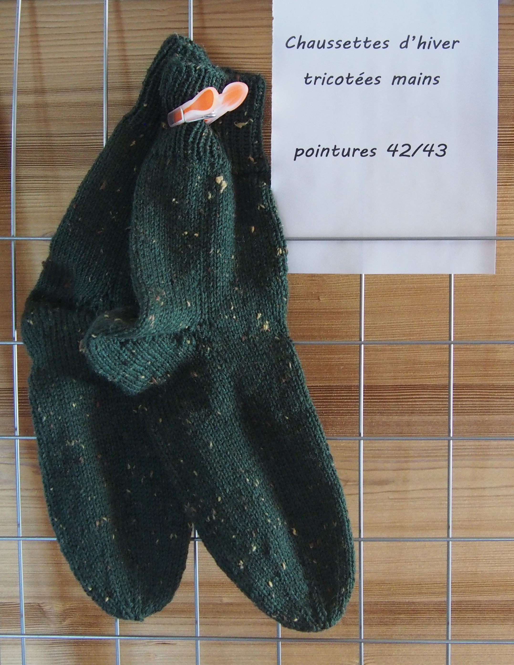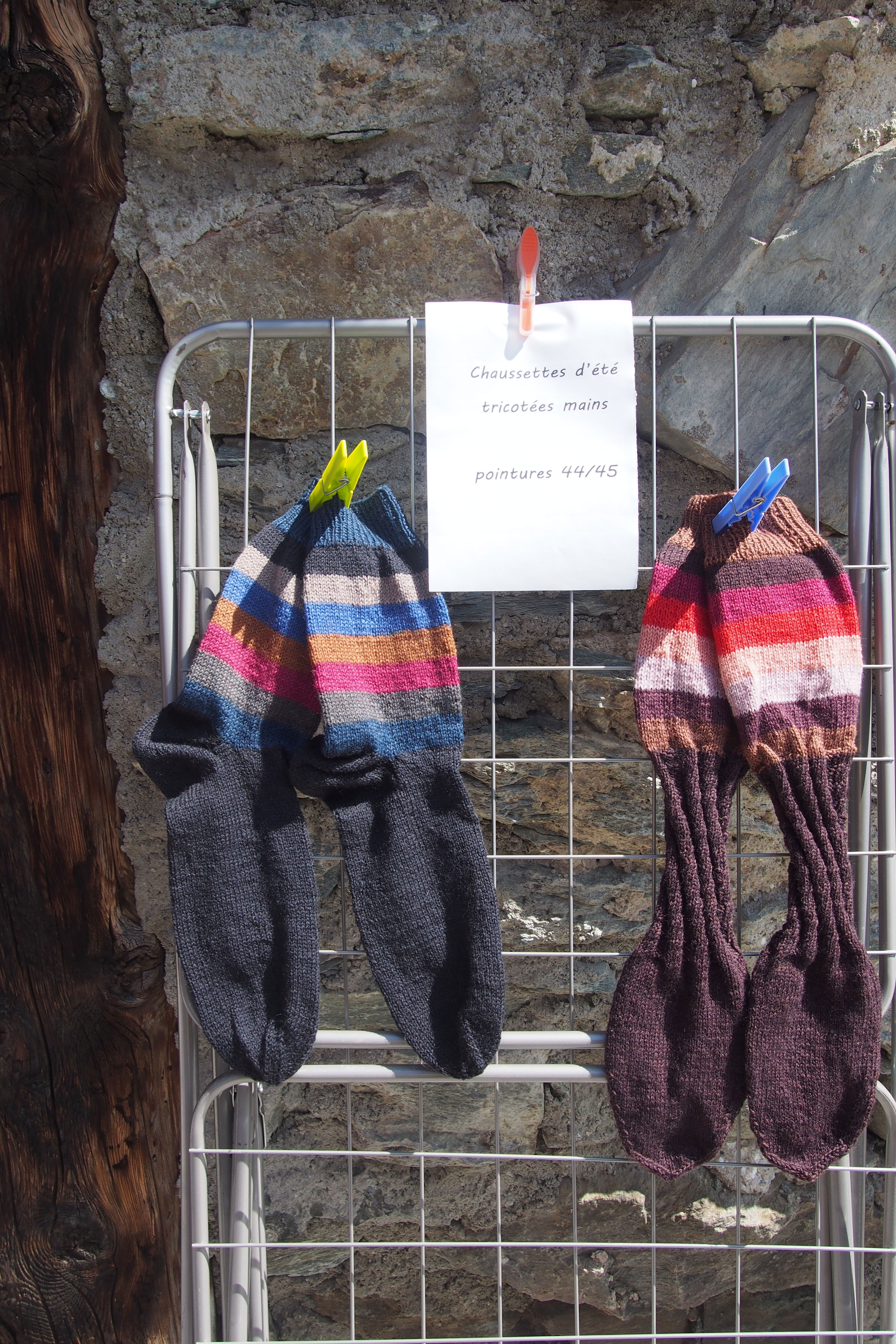Je vends une trentaine de paires de chaussettes que j’ai confectionnées.